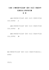 (3篇)乡镇党委书记在新任村(社区)党组织书记谈心谈话会上的讲话汇编目录 1.XX乡镇党委书记在新任村(社区)党组织书记谈心谈话会上的讲话2 2.XX乡镇党委书记在新任村(社区)党组织书记谈心谈话会上的讲话13 3.XX乡镇党委书记在新任村(社区)党组织书记谈心谈话会上的讲话20XX乡镇党委书记在新任村(社区)党组织书记谈心谈话会上的讲话同志们: 今天,我们在这里专门召开新任村(社区)党组织书记谈心谈话会。这次会议,既是一次集中的岗前培训,也是一次深入的思想交流,更是一次庄严的任前动员。首先我代表镇党委,向各位新当选的村(社区)党组织书记表示最热烈的祝贺!祝贺大家通过党员群众的信任和组织的考验,走上了基层党建和发展的关键领导岗位。这份信任饱含着组织的重托和群众的期盼;这份责任,关系着...