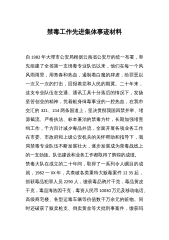 禁毒先进集体事迹材料(3篇)1、基层组织得到加强。禁毒民警在长期的对敌斗争中得到煅炼和成长,禁毒支部本着成熟个发展个的工作原则,把素质高,工作能力强具备入条件的入积极分子推荐给局委吸收为员,充分调动全体禁毒民警的工作积极性。广大员时时处处都能够起到先锋模范带头作用,吃苦在前,享受在后,用力的推动了禁毒工作的全面开展。员数从建队初期的人发展到现在的人,占民警总数的,并经局批准成立了禁毒支部。基层组织的战斗堡垒作用得到充分发挥,有力的推动了禁毒工作的全面发展。民警素质普遍提高。禁毒民警在做好各项业务工作的同时,认真学理论知识,通过函授学等渠道,全面提高民警自身文化素质和理论水平。局委也非常关心禁毒...