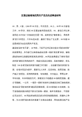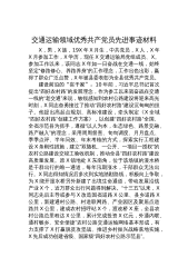 交通运输领域优秀共产党员先进事迹材料X,男,X族,19X年X月生,中共党员,X人,X年X月参加工作,X学历,现任X交通运输局党组成员、X。参加工作以来,该同志X年如一日奋战在交通一线,始终坚定“修路修心、养路养身”的工作理念,工作出色出彩,赢得了群众广泛点赞,X年被县委表彰为全县优秀共产党员。建设前沿的“实干家”。10年前,习近平总书记首次提出“四好农村路”的发展理念,作为参工以来就奋战在交通一线的“老交通”来说,敏锐感知到农村公路建设将迎来高光时刻,X同志奋勇接过了推动“四好农村路”建设沉甸甸的担子。他提出高起点规划、高标准建设,牵头制定《X全域“四好农村路”创建工作方案》,以创建“四好农村...