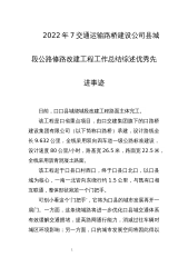 2022年7交通运输路桥建设公司县城段公路修路改建工程工作总结综述优秀先进事迹