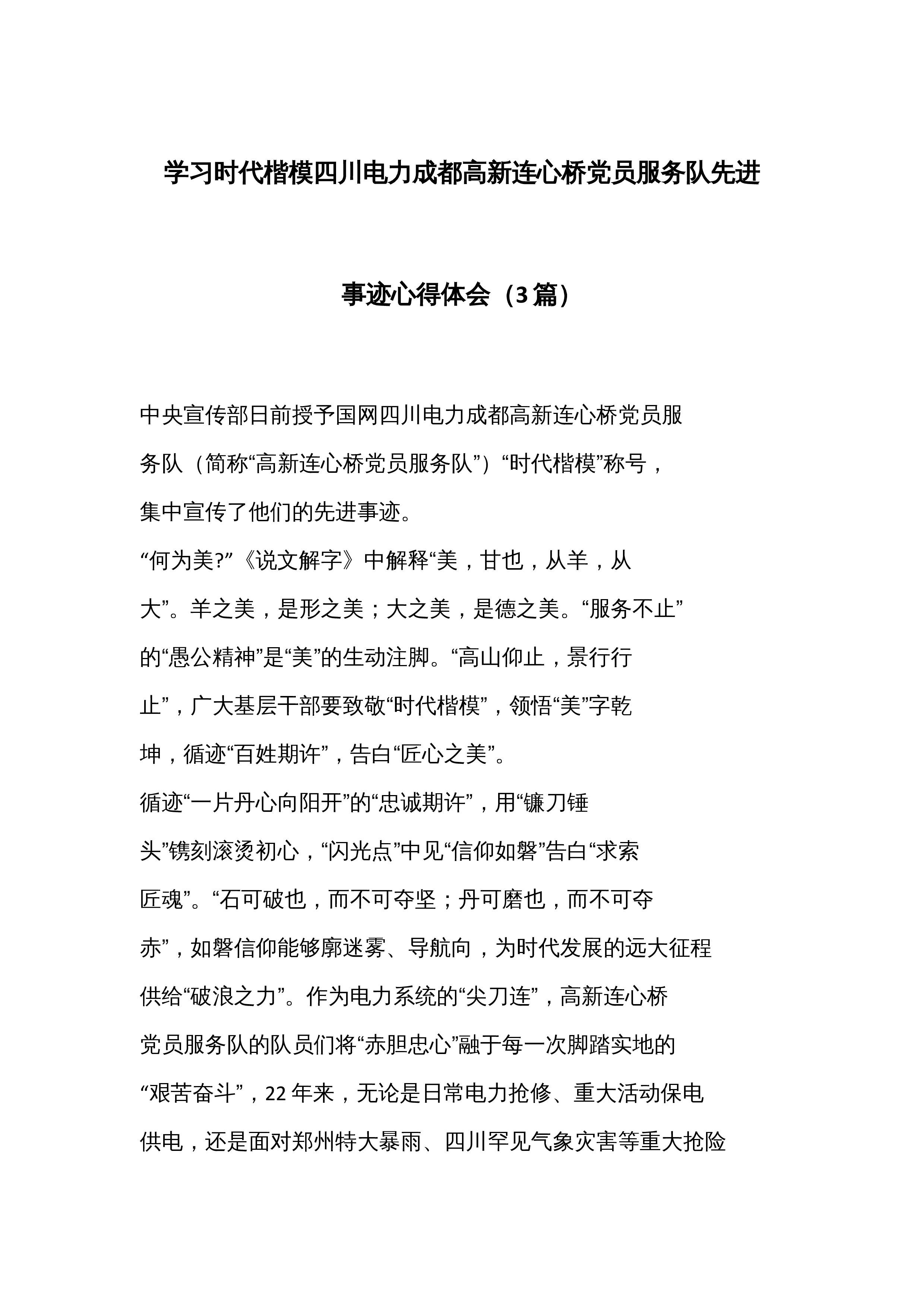 (3篇)学习时代楷模四川电力成都高新连心桥党员服务队先进事迹心得体会
