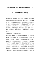 参加全省机关文稿写作培训班心得体会:要想笔下生花,尝尽酸甜苦辣!在当前形势下,省委和办公厅下决心举办这样一个大规模的培训班,充分体现了对文稿服务工作的高度重视,也为我们提供了学习交流、加油充电的难得机会。领导的讲话和3位文稿大家的授课,都是经验之谈、思想盛宴,可以说“高端大气上档次,解渴管用有内涵",听了感同身受、受益匪浅。下面,我结合自己的工作实践,汇报几点学习体会,讲得不对的请领导和同志们批评指正。第一点体会,怎么从“害怕写”到“怕不写”。有位领导讲过,文稿写作都会经历几个阶段:害怕写,不怕写,写不怕,怕不写。细细品味,这实际上蕴含的是文稿写作的四重境界。害怕写,这好理解,因为写材料的确是...