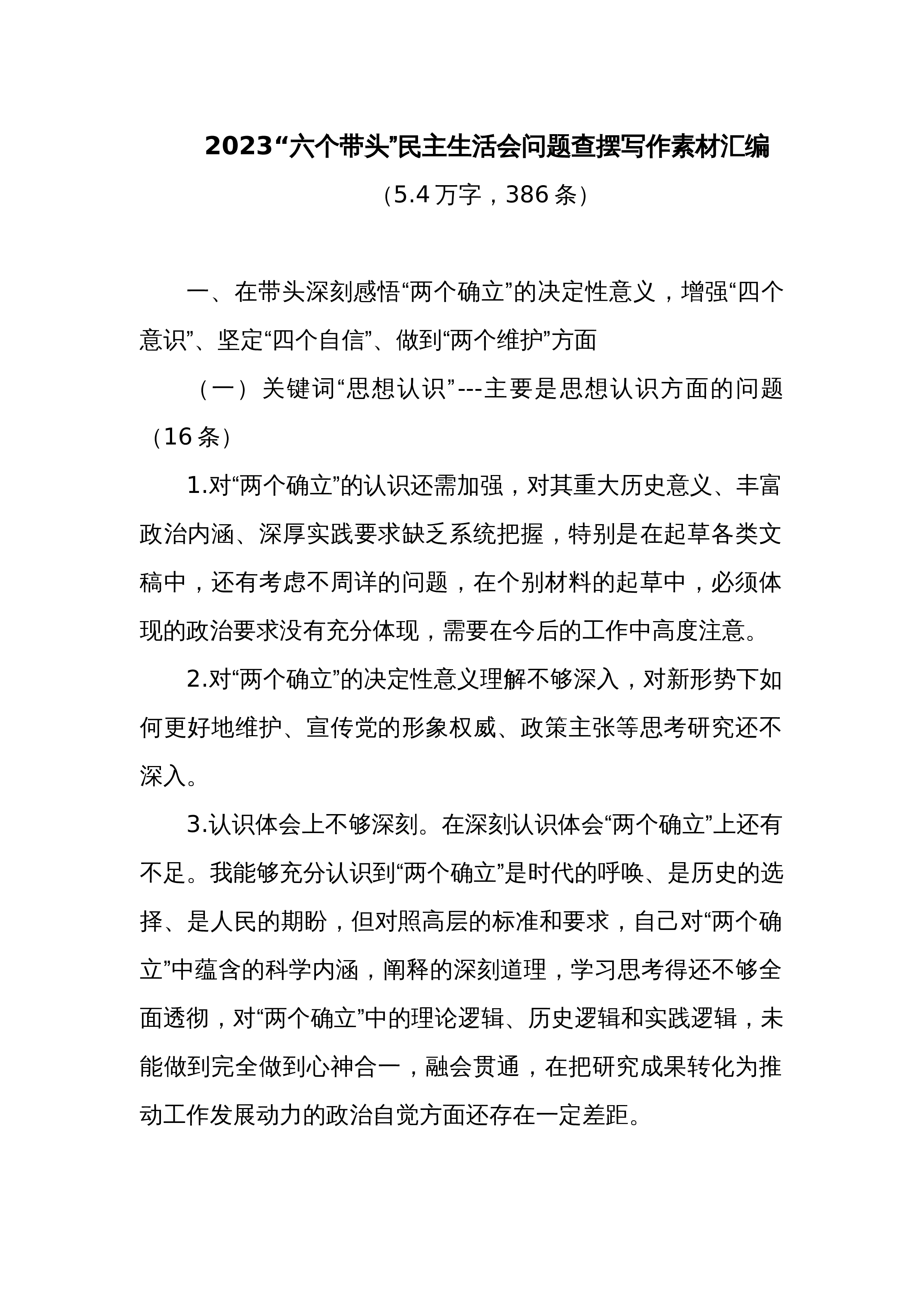2022年民生生活会六个带头问题查摆写作素材汇编(精品100页)