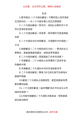 公文堂公文写作之家,体制人加油站目录1.新华视点·二十大报告解读|不断实现人民对美好生活的向往——从二十大报告看人民生活新图景2.二十大报告解读丨田书为:深刻认识新时代十年伟大变革的里程碑3.二十大报告解读丨李海青:谱写新时代更加绚丽华章4.二十大报告涉台内容解读:引领新时代中国统一大业5.独家解读〡二十大报告指引方向——事关妇女儿童事业、家庭家教家风建设、妇联改革和建设6.二十大报告解读|我国老龄工作有何进展?7.专家解读:二十大报告让全球看到了坚持开放、共赢的中国8.专家解读二十大报告中对外开放的新信号9.二十大报告解读丨聚焦18亿亩红线守住耕地才能端牢饭碗10.解读二十大报告之能源转型:...
