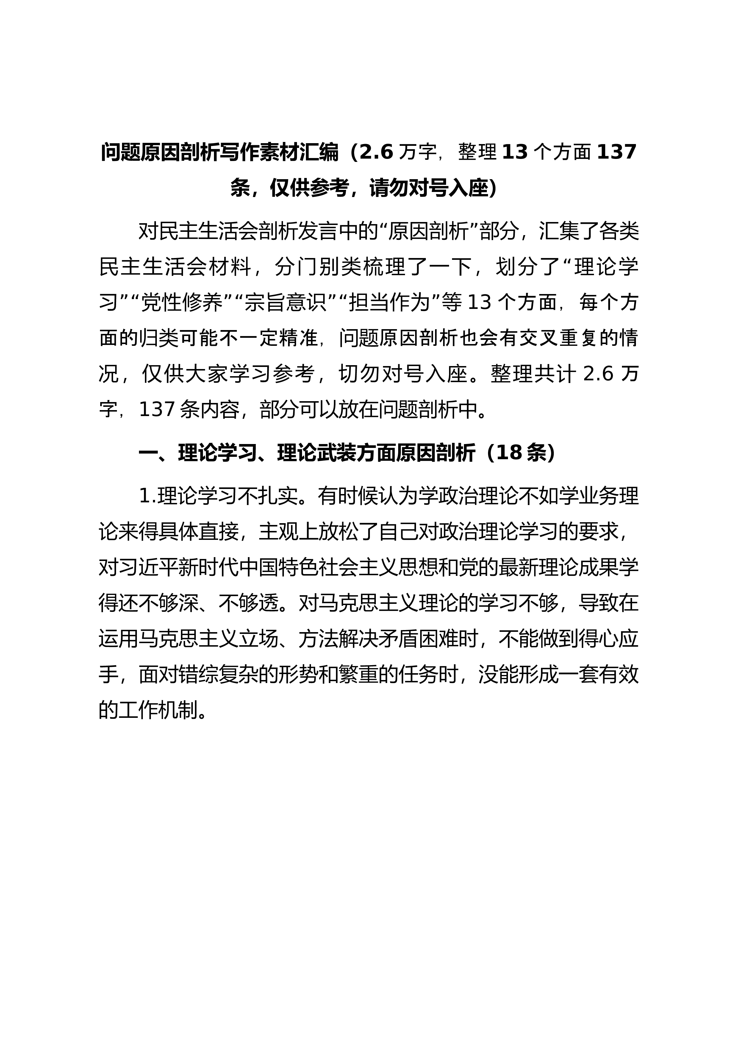 问题原因剖析写作素材汇编(2.6万字,整理13个方面137条,仅供参考,请勿对号入座)