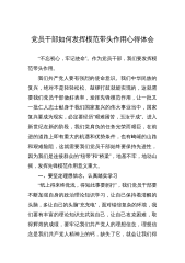 党员干部如何发挥模范带头作用心得体会“不忘初心,牢记使命”。作为党员干部,我们要发挥模范带头作用。我们共产党人要有强烈的使命意识。我们中华民族的复兴,绝对不是轻轻松松、敲锣打鼓就能实现的,这就需要我们党员干部做好表率,发挥先锋模范作用,让一批又一批仁人志士献身于我们国家复兴的伟大事业当中,国家复兴要成为现实,必定要经历“艰难困苦,玉汝于成”。进入新世纪在新的阶段,我们党肩负的任务光荣而艰巨,在前进的道路上即有重大的机遇和优势条件,也有崎岖的山路和艰难险阻,这就需要我们党员干部始终要保持先进性,因为我们是连接群众的“纽带”和“桥梁”,地基不牢,地动山摇,发挥先锋模范作用意义重大。一、要坚定理想信...