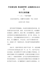开启新征程再创新梦想全面建设社会主义现代化新西藏——二〇二一年新年献辞自治区党委书记、西藏军区党委第一书记吴英杰自治区主席齐扎拉新年的钟声即将敲响,在这辞旧迎新的美好时刻,我们谨代表自治区党委、政府,向全区各族人民,向驻藏部队指战员、武警官兵、政法干警,向为西藏革命、建设和改革事业作出贡献的离退休老党员、老干部、老同志,向所有关心、支持西藏发展的社会各界人士,向中央和国家机关、对口援藏省市、中央企业,向在节日期间坚守岗位、奋战在工作一线的同志们,致以新年的祝福和诚挚的问候!2020年,是新中国历史上极不平凡的一年,也是西藏工作具有重大而深远意义的一年。这一年,习近平总书记亲自谋划、亲自部署召开...