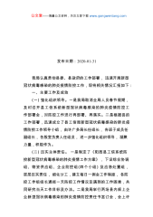 公文堂——海量公文资料,关注立即下载www.gongwentang.com发布日期:2020-01-31我局认真贯彻县委、县政府的工作部署,迅速开展新型冠状病毒感染的肺炎疫情防控工作,现将相关情况汇报如下:一、主要工作及成效(一)强化组织领导。一是我局取消全局人员春节假期,及时召开县工信系统新型冠状病毒感染的肺炎疫情防控工作部署会,对防控工作进行再部署、再落实。二是根据县的工作部署,迅速成立了县工信局新型冠状病毒感染的肺炎疫情防控工作领导小组,由许广多局长任组长,各班子成员任副组长,各股室负责人任组员,进一步强化组织领导,凝聚力量,积极作为。(二)压实主体责任。一是制定了《阳西县工信系统防控新...