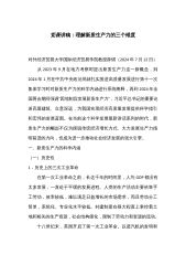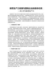 新质生产力发展与国有企业的使命任务—深入学习新质生产力发展新质生产力是习近平总书记着眼于统筹中华民族伟大复兴战略全局和世界百年未有之大变局,着眼于推动高质量发展和全面推进中国式现代化,高瞻远瞩提出的重大命题,是马克思主义政治经济学中国化时代化的最新理论成果,为我国大力发展新质生产力、以中国式现代化全面推进中华民族伟大复兴提供了遵循。习近平总书记指出,“国有企业是中国特色社会主义的重要物质基础和政治基础,是党执政兴国的重要支柱和依靠力量”。国有企业作为党和国家最可信赖的依靠力量,作为坚决贯彻执行党中央决策部署的重要力量,作为贯彻新发展理念、全面深化改革的重要力量,在推动新质生产力发展过程中应该承...