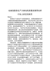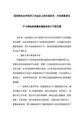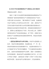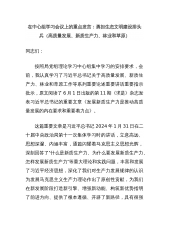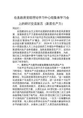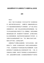 在中心组学习会议上的重点发言:勇担生态文明建设排头兵(高质量发展、新质生产力、林业和草原)同志们:按照局党组理论学习中心组集中学习的安排要求,会前,我认真学习了习近平总书记关于高质量发展、新质生产力、林业和草原工作等系列重要论述重要讲话重要指示批示,原文阅读了6月1日出版的第11期《求是》杂志发表习近平总书记的重要文章《发展新质生产力是推动高质量发展的内在要求和重要着力点》。这篇重要文章是习近平总书记2024年1月31日在二十届中央政治局第十一次集体学习时的讲话,立意高远、思想深邃、内涵丰富,通篇闪耀着马克思主义思想光辉,深刻回答了“什么是新质生产力、为什么要发展新质生产力、怎样发展新质生产力...