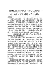在党工委学习贯彻二十届三中全会精神,加快培育新质生产力专题研讨交流会上的发言