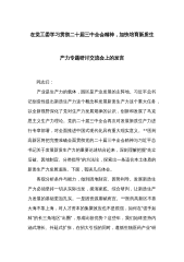 在党工委学习贯彻二十届三中全会精神,加快培育新质生产力专题研讨交流会上的发言 同志们: 产业是生产力的载体,园区是产业发展的主阵地。习近平总书记创造性提出新质生产力这个概念和发展新质生产力这个重大任务,以全新视野深化了党对生产力发展规律的认识,创新和发展了马克思主义生产力理论。党的二十届三中全会再次对发展新质生产力进行专章部署,对全面推进中国式现代化具有重大现实意义。**医药高新区将把完整准确全面贯彻党的二十届三中全会精神与习近平总书记关于发展新质生产力的重要论述结合起来,深刻理解把握“先立后破、因地制宜、分类指导”的方法论,探索出一条适合本土体质的新质生产力发展道路。下面,我谈几点体会。...