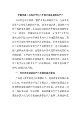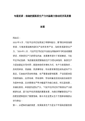 调研思考:以发展新质生产力为核心,推进国有企业的新一轮改革国企是中国特色社会主义事业发展的主要力量,肩负着推动社会进步、产业发展、经济发展的重任,是推动新质量生产力发展的主要力量。国有企业在我国经济体制改革中处于核心地位,而提高生产力水平则要求国有企业进一步深化改革,构建新的生产关系。一种能够推动以人才、技术、知识、管理、数据等生产因素和它们之间的结合为基础的一种新的生产关系。新一轮的国有企业改革深化提高行动旨在从生产关系的角度出发,打破制约新一代生产力发展的堵点卡点,使各类高端、高质量的生产要素在新的生产力中畅通无阻地流通、有效地分配,使之符合新的生产力发展需要的生产关系,使人、劳动材料、劳...