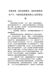 专题党课:强化创新驱动,加快发展新质生产力,为推动高质量发展注入澎湃新动能同志们:按照局党组工作安排,今天,我以《强化创新驱动,加快发展新质生产力,为推动高质量发展注入澎湃新动能》为题,给大家讲一堂党课,与大家共同探讨如何发展新质生产力推动高质量发展。一、学深悟透、把准方向,切实增强发展新质生产力的战略主动高质量发展的新实践,需要新的生产力理论来指导。去年,总书记在四川、黑龙江、我省、广西等地考察调研时,提出要整合科技创新资源,引领发展战略性新兴产业和未来产业,加快形成新质生产力。12月,“新质生产力”正式写入中央经济工作会议文件。今年1月,中央政治局集体学习时,总书记全面系统阐释了“什么是新...