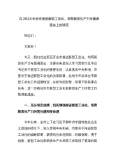 在2024年县委理论学习中心组集体学习会上的研讨发言(新质生产力专题)