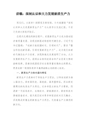 在2024年职业院校“新质生产力与职业教育高质量发展”研讨会上的交流发言 尊敬的各位领导,同志们: 习近平总书记在今年9月召开的全国教育大会上强调,建设教育强国要正确处理支撑国家战略和满足民生需求、培养人才和满足社会需要等重大关系。职业教育领域,要构建职普融通、产教融合的职业教育体系,大力培养大国工匠、能工巧匠、高技能人才。这为职业教育在建设教育强国的新征程中担当作为提供了根本遵循。党的二十届三中全会强调要“因地制宜发展新质生产力”,这是推动高质量发展的内在要求和重要着力点。人才是加速新质生产力形成的重要智力资源。新质生产力发展不仅需要战略科学家、一流科技领军人才和创新团队、青年科技人才、...