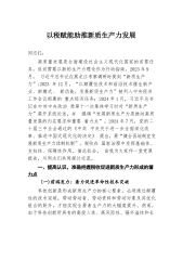 公司党委书记、董事长理论中心组研讨发言:加快培育和发展新质生产力在创建一流企业新征程中奋勇争先2024年3月20日,习近平总书记在湖南省长沙市主持召开新时代推动中部地区崛起座谈会时强调,要以科技创新引领产业创新,积极培育和发展新质生产力。党的二十届三中全会要求“健全因地制宜发展新质生产力体制机制”,明确了发展新质生产力的重点任务、主攻方向并作出全面部署。新质生产力特点是创新,关键在质优,本质是先进生产力。集团正在以改革促发展,理应抢抓机遇,立足理论、现实、未来“三个视角”,抓住“五项重点”,大力发展新质生产力,在协同推动中部地区崛起和长江经济带高质量发展中奋勇争先、为奋力谱写中国式现代化x篇章...
