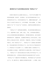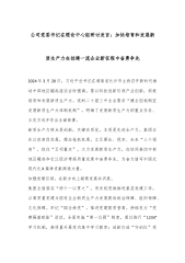 公司党委书记在理论中心组研讨发言:加快培育和发展新质生产力在创建一流企业新征程中奋勇争先2024年3月20日,习近平总书记在湖南省长沙市主持召开新时代推动中部地区崛起座谈会时强调,要以科技创新引领产业创新,积极培育和发展新质生产力。党的二十届三中全会要求“健全因地制宜发展新质生产力体制机制”,明确了发展新质生产力的重点任务、主攻方向并作出全面部署。新质生产力特点是创新,关键在质优,本质是先进生产力。集团正在以改革促发展,理应抢抓机遇,立足理论、现实、未来“三个视角”,抓住“五项重点”,大力发展新质生产力,在协同推动中部地区崛起和长江经济带高质量发展中奋勇争先、为奋力谱写中国式现代化X篇章贡献高...