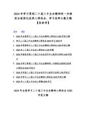 2024年学习贯彻二十届三中全会精神进一步推进全面深化改革心得体会、学习材料9篇文稿【供参考】
