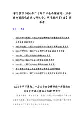 学习贯彻2024年二十届三中全会精神进一步推进全面深化改革心得体会、学习材料【8篇】供参考