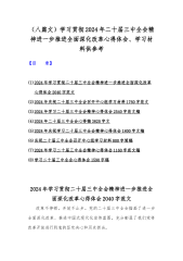 (八篇文)学习贯彻2024年二十届三中全会精神进一步推进全面深化改革心得体会、学习材料供参考