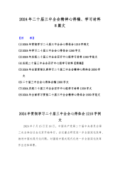 (八篇文)学习贯彻2024年二十届三中全会精神进一步推进全面深化改革心得体会、学习材料供参考【目录】(1)2024年学习贯彻二十届三中全会精神进一步推进全面深化改革心得体会2040字范文(2)2024年庆祝二十届三中全会召开中心组学习材料1760字范文(3)2024年学习二十届三中全会精神心得体会2540字范文稿(4)2024年二十届三中全会心得稿3820字文(5)2024年庆祝学习二十届三中全会精神心得体会1800字文稿(6)庆祝二十届三中全会召开中心组学习材料800字简稿(7)2024年学习二十届三中全会精神心得体会1160字范文稿(8)学习二十届三中全会心得体会1590字稿2024年学习...