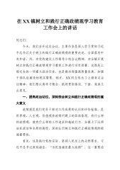 XX镇在树立和践行正确政绩观学习教育暨“十化”党建工作专题部署会上的讲话