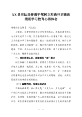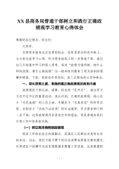 XX县退役军人事务局普通干部树立和践行正确政绩观学习教育心得体会尊敬的各位领导、同志们:大家好。非常荣幸能有这次机会,在局里举办的树立和践行正确政绩观学习教育读书班上,与大家交流学习心得。作为一名身处服务退役军人工作一线的普通干部,这次学习对我触动很深。下面,我结合自身岗位和思想实际,分享几点粗浅的认识和体会,不当之处,敬请批评指正。一、深化思想淬炼,校准“我是谁”的政绩原点通过这几天的集中学习和专题辅导,我深刻认识到,政绩观并非高高在上的理论,而是贯穿于日常工作的世界观、价值观和方法论,它从根本上回答了“为谁树政绩、树什么样的政绩、怎样树政绩”的时代课题。作为退役军人事务部门的一名干部,校准政绩观的原点,就是要始终把退役军人放在心中最高位置。(一)深刻领悟政绩为谁而树的根本立场正确的政绩观...