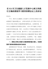 在XX市卫生健康人才发展中心树立和践行正确政绩观学习教育部署会议上的讲话
