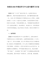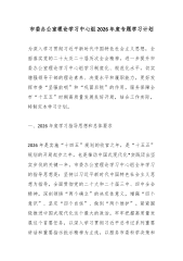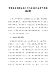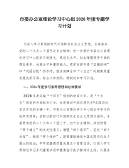市政府党组理论学习中心组2026年度专题学习计划为持续深入学习贯彻新时代中国特色社会主义思想,全面贯彻落实党的二十大和二十届历次全会精神,巩固拓展主题教育成果,不断提升市政府领导班子及成员的政治判断力、政治领悟力、政治执行力,确保党的创新理论在政府各项工作中落地生根、开花结果,引领“十五五”时期我市经济社会发展开好局、起好步,现结合实际,制定2026年度市政府党组理论学习中心组专题学习计划如下:一、2026年学习的指导思想2026年是实施“十五五”规划的开局之年、奠基之年,做好全年工作意义重大。市政府党组理论学习中心组学习的指导思想是:坚持以马克思列宁主义、毛泽东思想、邓小平理论、“三个代表”重要思想、科学发展观为指导,全面贯彻新时代中国特色社会主义思想。深入落实党的二十大和二十届四中全会精...