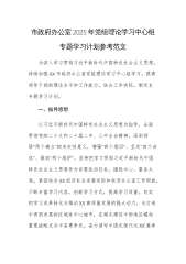 市人大办公室机关2025年党组理论学习中心组专题学习计划参考范文