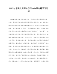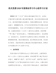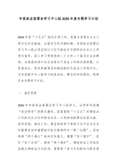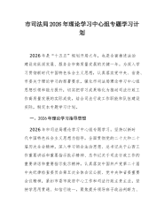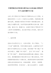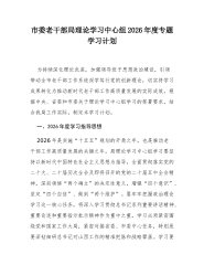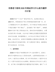 市委网络安全和信息化委员会办公室2026年理论学习中心组专题学习计划为深入学习贯彻习近平新时代中国特色社会主义思想,全面落实党的二十大及二十届历次全会精神,巩固拓展主题教育成果,持续提升领导班子和领导干部的理论素养、政治能力与履职本领,切实用党的创新理论武装头脑、指导实践、推动工作,根据中央、省委和市委关于理论学习中心组学习的部署要求,结合我市网信工作实际,制定本年度专题学习计划。一、指导思想坚持以马克思列宁主义、毛泽东思想、邓小平理论、“三个代表”重要思想、科学发展观为指导,全面贯彻习近平新时代中国特色社会主义思想,深刻领悟“两个确立”的决定性意义,增强“四个意识”、坚定“四个自信”、做到“两个维护”。聚焦用党的创新理论凝心铸魂这一根本任务,紧紧围绕推进中国式现代化这个最大的政治,牢牢把握...