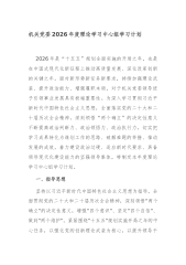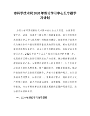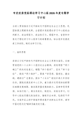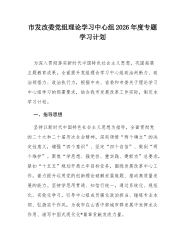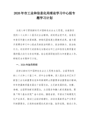 市发展和改革委员会2026年理论学习中心组专题学习计划2026年是“十五五”规划开局之年,也是我市推动资源型经济转型提质、实现高质量发展的关键一年。深入开展理论学习中心组专题学习,对于市发展和改革委员会筑牢思想根基、强化政治引领、提升履职效能,完整准确全面贯彻党中央和省委、市委决策部署,在服务全市经济社会发展大局中展现新担当、实现新作为具有重要意义。本计划立足市发改委统筹协调、宏观调控、改革推进、项目管理等核心职能,围绕新时代中国特色社会主义思想和党中央重大决策部署,结合山西资源型经济转型战略定位及我市发展实际,明确学习重点、细化学习要求,引导中心组成员以学铸魂、以学增智、以学正风、以学促干,切实把学习成果转化为推动我市经济社会高质量发展的强大动力和实际成效。一、2026年理论学习指导思想以...