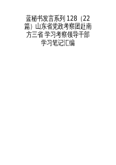 蓝秘书发言系列128(22篇)山东省党政考察团赴南方三省学习考察领导干部学习笔记汇编目录1.前言............................................................12.淄博市委书记周连华:制度创新+精准落实...............................................23.枣庄市委书记李峰:创新是转型的源头活水............................................34.东营市委书记李宽端:营商环境是重要软实力.....................................