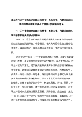 传达学习辽宁省党政代表团赴吉林省、黑龙江省、内蒙古自治区学习考察和有关座谈会议精神及贯彻落实意见一、辽宁省党政代表团赴吉林省、黑龙江省、内蒙古自治区学习考察和有关座谈会议精神5月11日,辽宁省党政代表团赴吉林黑龙江内蒙古学习考察总结交流会在沈阳举行。省委书记、省人大常委会主任主持会议并讲话,省委副书记、省长出席会议并讲话,省政协主席出席会议。XX在讲话中指出,辽宁省党政代表团赴吉林、黑龙江和内蒙古学习考察,是全面贯彻落实党的XX大精神,深入贯彻落实习近平总书记关于东北、辽宁振兴发展的重要讲话和指示批示精神的务实举措,是推动主题教育走深走实的具体行动。考察过程中,代表团一路走一路学一路思考,深刻...