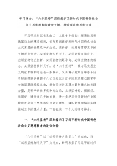 学习体会:“六个坚持”深刻揭示了新时代中国特色社会主义思想根本的政治立场、理论观点和思想方法习近平总书记在党的二十大报告中指出:继续推进实践基础上的理论创新,首先要把握好新时代中国特色社会主义思想的世界观和方法论,坚持好、运用好贯穿其中的立场观点方法。必须坚持人民至上、必须坚持自信自立、必须坚持守正创新、必须坚持问题导向、必须坚持系统观念、必须坚持胸怀天下,这“六个坚持”,既与马克思主义的世界观和方法论一脉相承,又来源于党的百年奋斗历史经验特别是党的十八大以来以习近平同志为核心的党中央治国理政经验总结,具有坚实的真理力量和强大的实践力量,是科学的世界观和方法论,必须坚持好、把握好、运用好。通过...