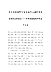 强化党章意识 严守党规党纪 切实履行管党治党的主体责任——党章党规党纪专题学习体会