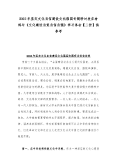 2023年坚定文化自信建设文化强国专题研讨发言材料:坚定文化自信,坚持走自己的路与《文化建设自觉自信自强》学习体会【两篇文】