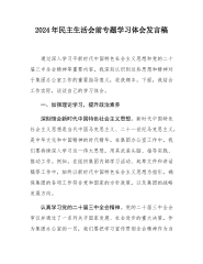 2024年度组织生活会、民主生活会前专题学习体会发言材料(1)在民主(组织)生活会召开前,我们围绕党的路线方针政策进行了专题学习。这不仅是一次理论的深化,更是一次思想的洗礼,让我们在回顾初心、对照要求中找准方向、认清差距。通过学习,我们不仅对党的方针政策有了更加系统的理解,也对自身的思想觉悟、工作方法、作风建设等方面进行了深入剖析。站在新的起点,我将结合学习所得,围绕如何强化党员先锋意识、推动工作提质增效,谈几点认识和思考。一、学习体会(一)深学细悟,筑牢“思想根基”在民主(组织)生活会前的专题学习中,我们再次深刻领悟党的路线方针政策。这不仅是理论的深化,更是思想的淬炼,让我们在纷繁复杂的工作...