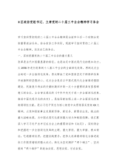 X区政协党组书记、主席党的二十届三中全会精神学习体会学习宣传贯彻党的二十届三中全会精神是当前和今后一个时期全党的重要政治任务。结合政协工作实际,现就学习宣传贯彻二十届三中全会精神,谈谈自己的体会。一、深刻把握党的二十届三中全会的重大意义改革是当代中国最显著的特征,也是决定中国式现代化的根本动力。从1978年进行改革到十八届三中全会的全面深化改革,再到这次全会的进一步全面深化改革,再次释放了党和国家坚定不移高举改革开放旗帜的坚强决心。这次全会是在以中国式现代化全面推进强国建设、民族复兴伟业的关键时期召开的一次十分重要的具有里程碑意义的会议。全会审议通过的《中共中央关于进一步全面深化改革、推进中国...