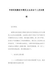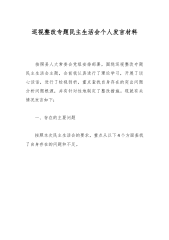 2023年政法委书记巡视整改专题民主生活会个人发言提纲按照市委《关于落实省委第X巡视组反馈意见的整改方案》要求,对照党中央决策部署以及省委工作安排,针对省委巡视反馈意见涉及事项,逐项研究,主动认领,深入查摆明确整改措施。紧密结合习近平新时代中国特色社会主义思想主题教育,积极参加市委理论学习中心组学习研讨,广泛征求意见,深入谈心谈话,精准查找自身存在的问题深刻剖析问题产生的深层次原因,明确了今后的努力方向和整改措施。现将有关情况汇报如下:一、存在的主要问题(一)在贯彻落实党中央决策部署以及省委工作安排方面一是学用结合不紧密,学习成果转化不充分。学习领会习近平新时代中国特色社会主义思想和党的XX大...