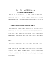 中共中国第一汽车集团公司委员会关于专项巡视整改情况的通报