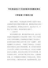 市纪委监委关于对县委落实巡视整改情况日常监督工作情况汇报