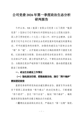 机关党委2026年第一季度意识形态领域分析研判报告2026年是乘势而上、统筹谋划长远发展的关键之年。第一季度以来,机关党委坚持以习近平新时代中国特色社会主义思想为指导,全面落实党中央及上级党组织关于意识形态。工作的各项决策部署,紧扣开局启航的时代脉搏,以高度的。政治敏锐性和强烈的责任担当,扎实推进机关意识形态领域各项建设。面对快速变化的信息传播环境与多元交织的思想态势,机关党委始终把牢正确政治方向,强化前瞻性思考与全局性谋划,坚决当好良好政治生态的引领者和捍卫者。现将2026年第一季度机关意识形态领域总体情况、主要风险研判及下一步重点举措报告如下。一、聚焦思想引领,第一季度工作态势平稳向好(一)强化“领头雁”效应,统筹部署更加有力。机关党委始终把意识形态工作作为极端重要的政治任务,通过压实责...