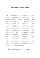 XX市委组织部2025年度政治生态分析研判报告(精品)2025年以来,市委组织部党组坚持以习近平新时代中国特色社会主义思想为指导,深入学习贯彻党的二十大和二十届三中、四中全会精神,全面落实新时代党的建设总要求和新时代党的组织路线,坚决扛起管党治党政治责任,将政治生态建设作为基础性、经常性工作,深度融入干部队伍建设、基层党组织建设、人才队伍建设等核心职能,通过系统谋划、精准施策、常态监督,持续推动组织系统政治生态向上向好。现将年度政治生态分析研判情况报告如下。一、政治生态建设总体态势一年来,部党组深刻把握“组织部门是政治机关”的根本定位,始终把政治忠诚作为首要品质,把净化政治生态作为生命工程,着力在“铸忠诚、强班子、严规矩、正风气、提效能”上综合施策,政治生态呈现出“根基牢固、导向鲜明、清风充...