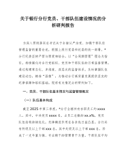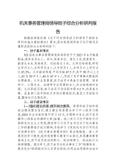 机关事务管理局领导班子综合分析研判报告根据县委组织部《关于印发领导班子和领导干部综合研判实施方案的通知》要求,现对我局领导班子运行情况及履职成效综合分析研判如下:一、班子基本情况XX县机关事务管理局党政领导班子于2021年6月换届配备,现有成员6人。其中,党委书记、局长1名,党委委员、副局长4名,党委委员、纪检组长1名。从学历结构看,研究生学历2人,本科学历4人,大专学历1人,本科及以上学历占比83.3%。从年龄结构看,平均年龄47.5岁,其中50岁以上2人,45至50岁3人,40至45岁1人,形成了老中青梯次配备的合理格局。从专业背景看,班子成员中具备行政管理、财务审计、工程专业、法律等专业背景的4人,专业结构相对合理。从任职经历看,班子成员平均任职年限5.2年,均具备乡镇、县直部门或市级...