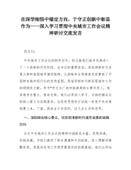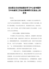 深入贯彻中央城市工作会议精神,奋力书写中国式现代化县域城建新篇章——在专题研讨交流会上的发言同志们:近期召开的中央城市工作会议,是我国城市发展进入新阶段召开的一次具有里程碑意义的重要会议。习近平总书记发表的重要讲话,高屋建瓴、思想深邃、内涵丰富,深刻阐述了新时代新征程做好城市工作的一系列重大理论和实践问题,为我们擘画了中国特色城市现代化的宏伟蓝图,提供了根本遵循。深入学习领会、全面准确把握会议精神实质,并将其转化为推动**城市高质量发展的强大动力和务实行动,是当前和今后一个时期我们肩负的重大政治责任和重要发展任务。下面,结合学习思考和**实际,谈几点认识和体会。一、深化认识提升站位,精准把握新时代城市发展核心要义习近平总书记在中央城市工作会议上深刻指出:“城市是人民的城市,人民城市为人民。”...