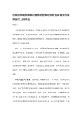在科技系统统筹抓好疫情防控和经济社会发展工作视频会议上的讲话同志们:今天我们召开这次视频会,主要目的是深入学习贯彻习近平总书记重要讲话重要指示精神、党中央决策部署,认真学习落实市委市政府和中国科协具体要求,回顾全市科协系统前期疫情防控工作,对统筹抓好疫情防控和经济社会发展工作作出具体安排。刚才,XX同志分别传达了中央、市委和中国科协有关精神,全市科协系统要认真学习领会、准确把握。X个区县科协主席的发言很好,讲得精彩。总起来讲,新冠肺炎疫情发生以来,全市科协系统深入学习贯彻习近平总书记提出的“坚定信心、同舟共济、科学防治、精准施策”总要求,主动担责、积极作为,充分发挥独特优势、政治作用,在坚定信...