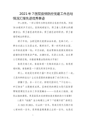 2021年6市X医院疫情防控党建引领推动高质量发展优秀先进事迹