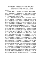 关于做好当下疫情防控工作的几点要求——汪山泉同志在市委常委(扩大)会议上的讲话同志们:疫情是一面镜子,我们工作上的任何纰漏、缺陷和成绩、成效,都在这面镜子下看得清清楚楚。因此,大家要学会在这面“镜子”下工作,对工作中的问题,来不得半点的含糊和疏忽。当下有几项重点工作,我再作一强调。第一、关于滞留旅客的问题。这项工作从8月25日我们已经安排,截至目前,按照省上相关文件精神,在严格把关的情况下,已有序进行了疏散,但仍有大量滞留人员。同志们,来的都是客,不管到什么时候,不管我们处于何种境地,压力有多大,基本的礼数礼节还是要有的。比如,反映热线电话打不通的问题,我到热线电话的接线现场进行了查看,5部电...